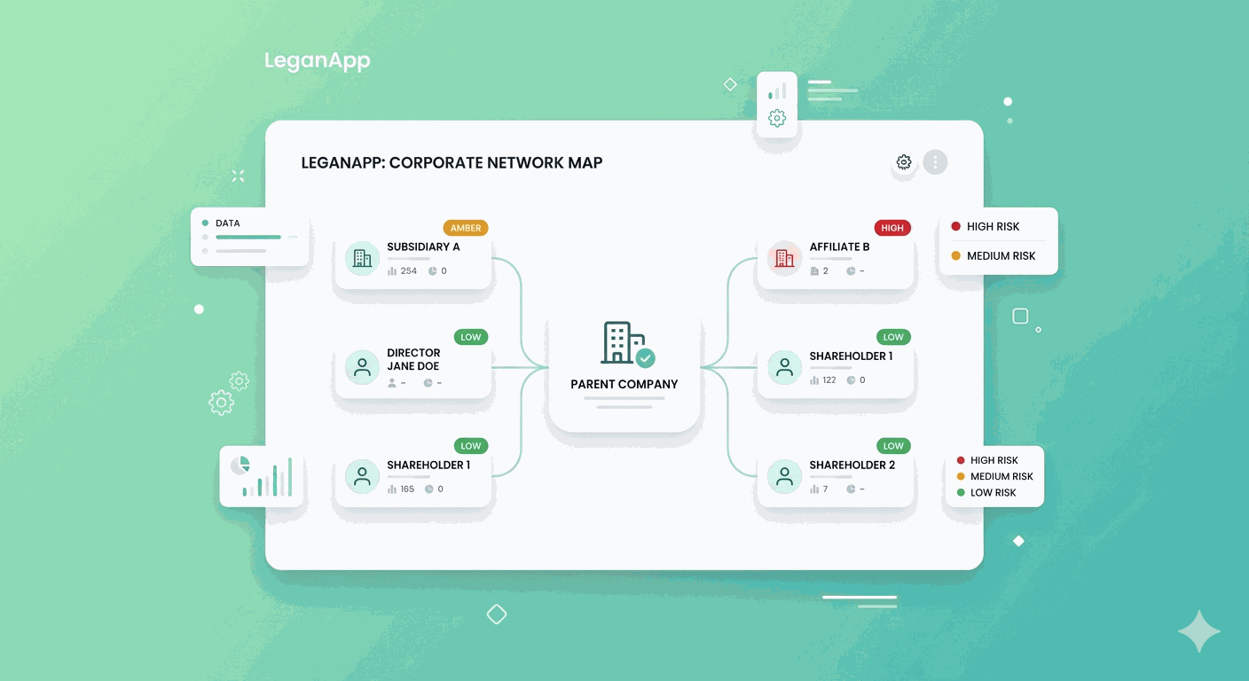 Generate detailed reports with relationship mapping, stakeholder profiles, risk assessment, and compliance indicators
